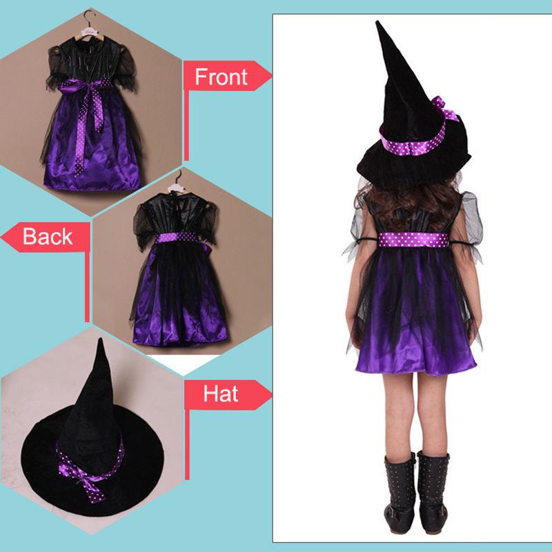 Pour faire plaisir à votre fille, optez pour ce Costume De Sorcière avec robe et chapeau. Robe disponible en version courte et longue.
