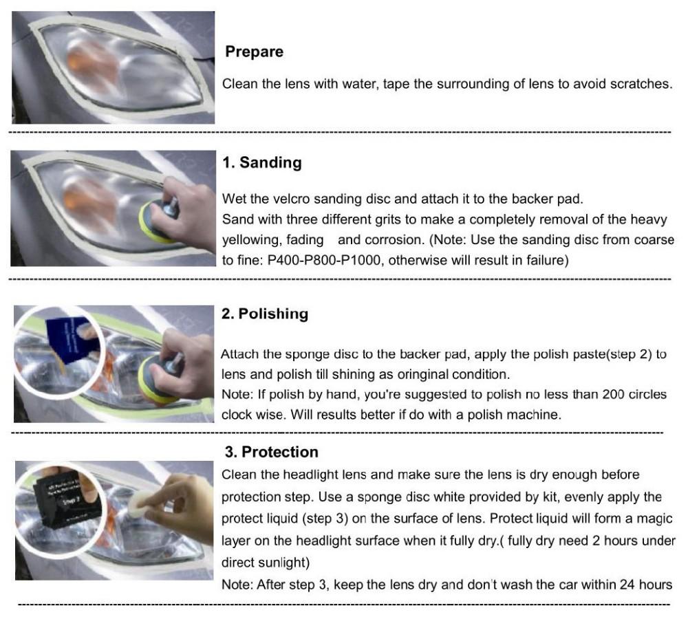 Le principe est simple, le kit DIY comporte tous les outils nécessaires pour le polissage de phare simplement et efficacement.
