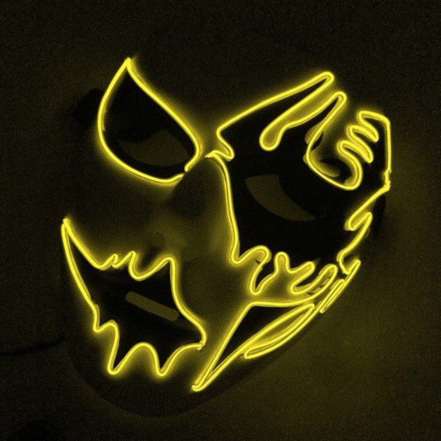 Fonctionnant avec de la luminescence (lumière dite « froide »), le masque peut diffuser de la lumière en continu ou clignoter. De quoi briller de mille feux !