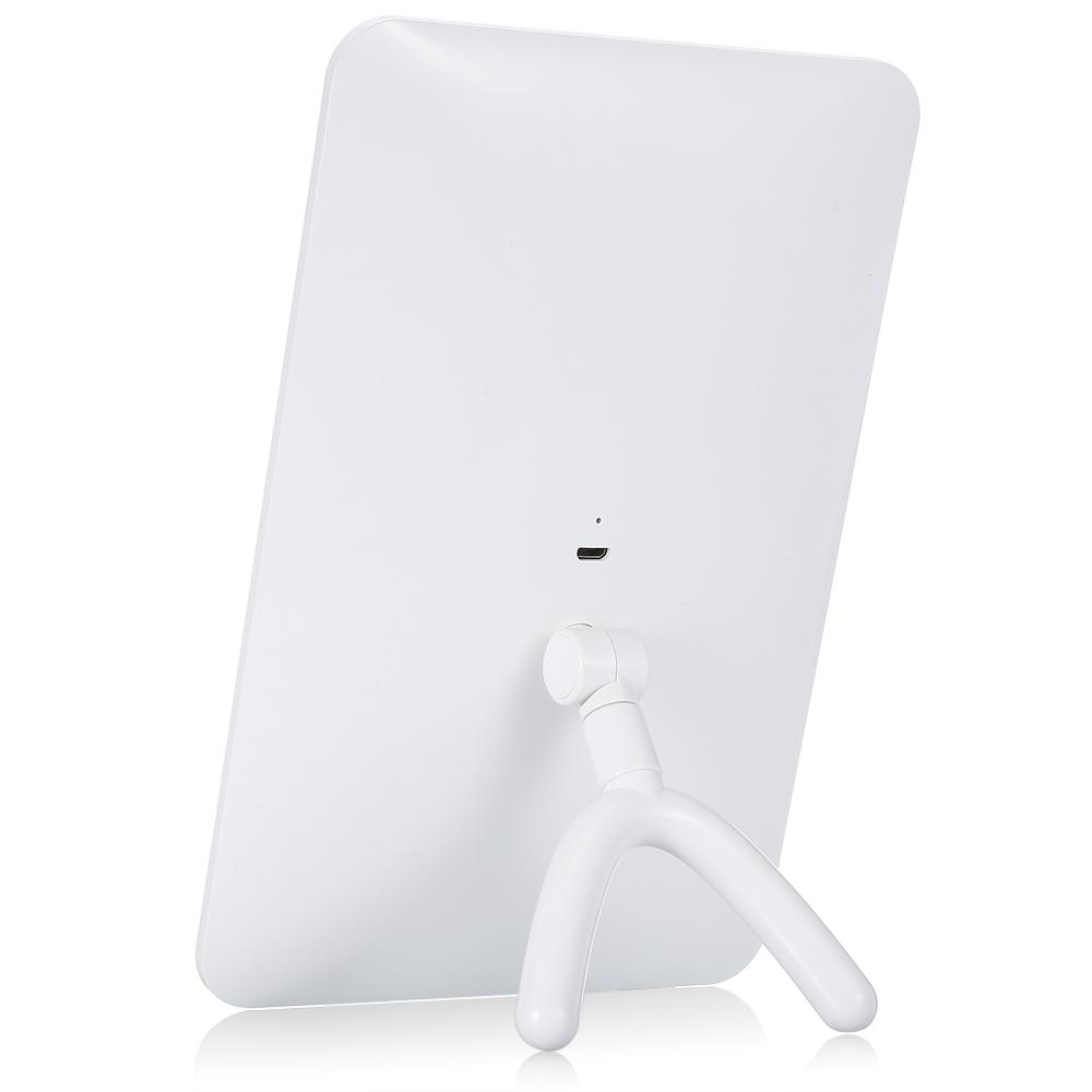 Muni d’un support pliant, le miroir est réglable à 180°.