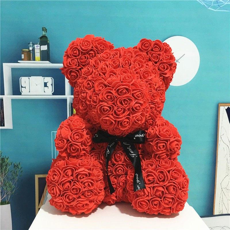 Fait main, avec des roses artificielles en latex, cet ours en peluche est aussi beau qu’inoffensif sur le plan sanitaire.